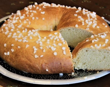 Il s'agit d'une fabrication ménagère de pâte à pain, parfumée d'eau de fleur d'oranger, légèrement sucrée et beurrée, assez dense, à base de farine de blé .