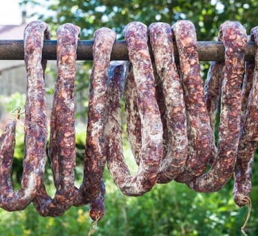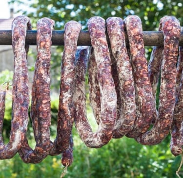 La saucisse sèche est une charcuterie composée d'un hachis d'une ou plusieurs viandes, principalement du porc, assaisonné de plusieurs façons suivant des traditions locales